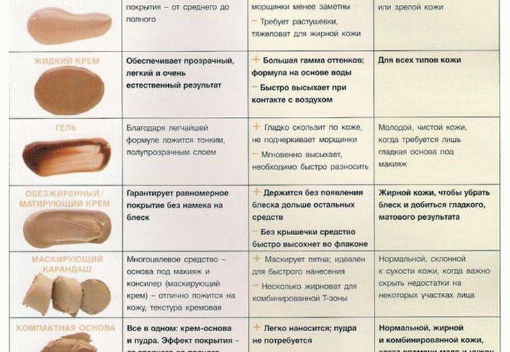 Основные типы тонального крема