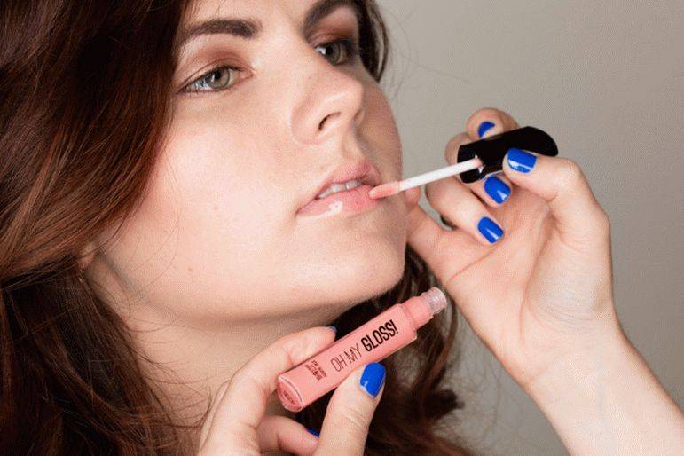 - Губки можно подкрашивать помадой персикового, карамельного, кораллового или розового цвета. Для создания романтичного образа подойдет блеск с эффектом увлажнения.