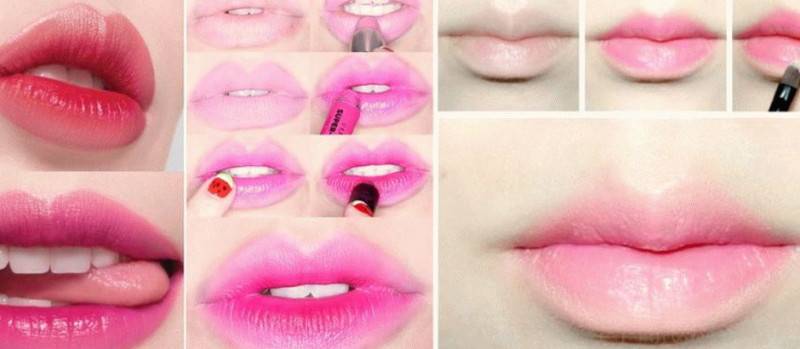 Очень актуально омбре или градиент на губах при помощи блеска и помады