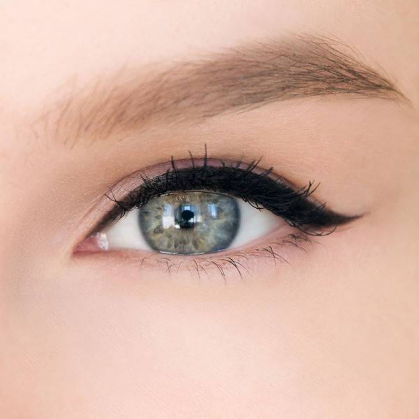 Взяв подводку, проводим от внешнего кончика глаза в сторону по направлению к виску, это и будет контур нашей стрелки. Далее, дорисовываем ее и получаем яркий взгляд.