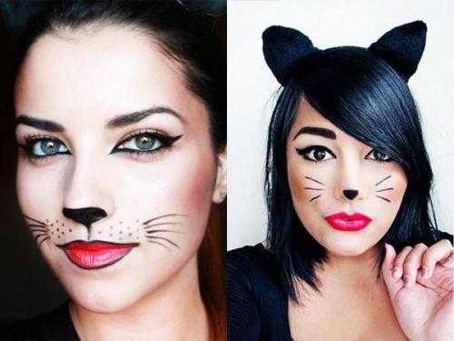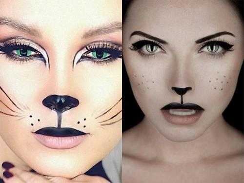 Добавьте немного усиков, розовый носик и губы. Эффектнее смотрится, когда верхняя губа окрашена в темный, а нижняя, наоборот, скрыта тональным кремом.