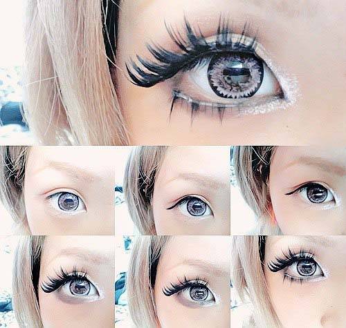 Очень тяжело добиться особенной распахнутости взгляда с помощью обыкновенной черной туши, даже если нанести ее в несколько слоев. Лучший вариант – это накладные ресницы. Чтобы добиться бездонности взгляда можно использовать контактные линзы, происходит это за счет увеличения зрачка.