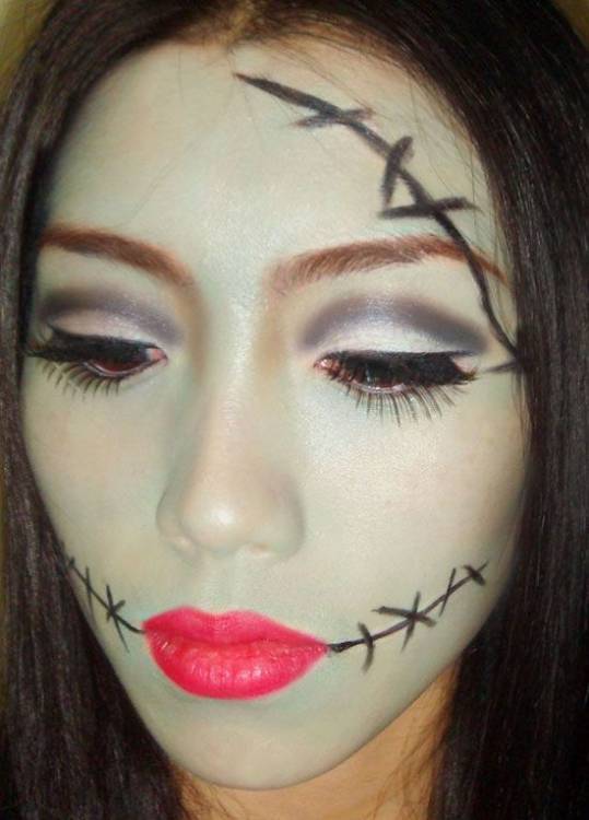 Все мы знаем коварность куклы Вуду и то, как она калечит жизни. Этот персонаж довольно страшный и может пощекотать нервы кому угодно. Попробуйте же сделать воплощение Вуду на своем лице. Макияж должен начинаться с тона. Кукла делалась из грязных тряпок, поэтому желательно сделать тон потемнее и постараться создать эффект пыли.