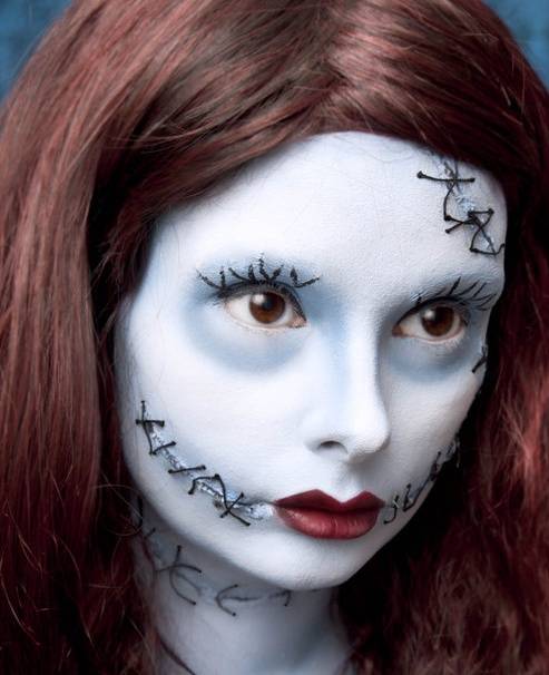 Образ этого яркого персонажа подразумевает наличие старого свадебного платья (желательно, порванного, грязного), синего парика, цветочного венка и фаты. Кроме того, необходимо сделать соответствующий макияж на Хэллоуин в домашних условиях.