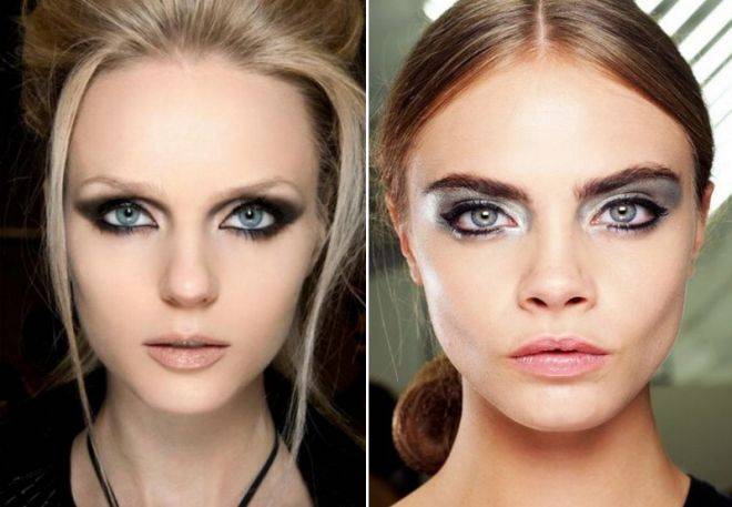 К серым глазам отлично подходит макияж в стиле «smoky eyes» Кстати, такой макияж отлично впишется в атмосферу корпоратива, что позволит вам не остаться без внимания. К такому макияжу глаз лучше всего подойдет матовая или пастельного тона помада.