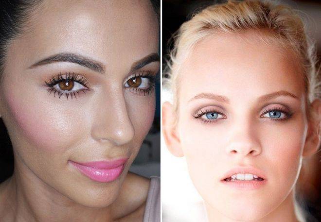 - Румяна — персиковые или розовые. Сливовых избегать, так как они визуально уменьшают глаза.