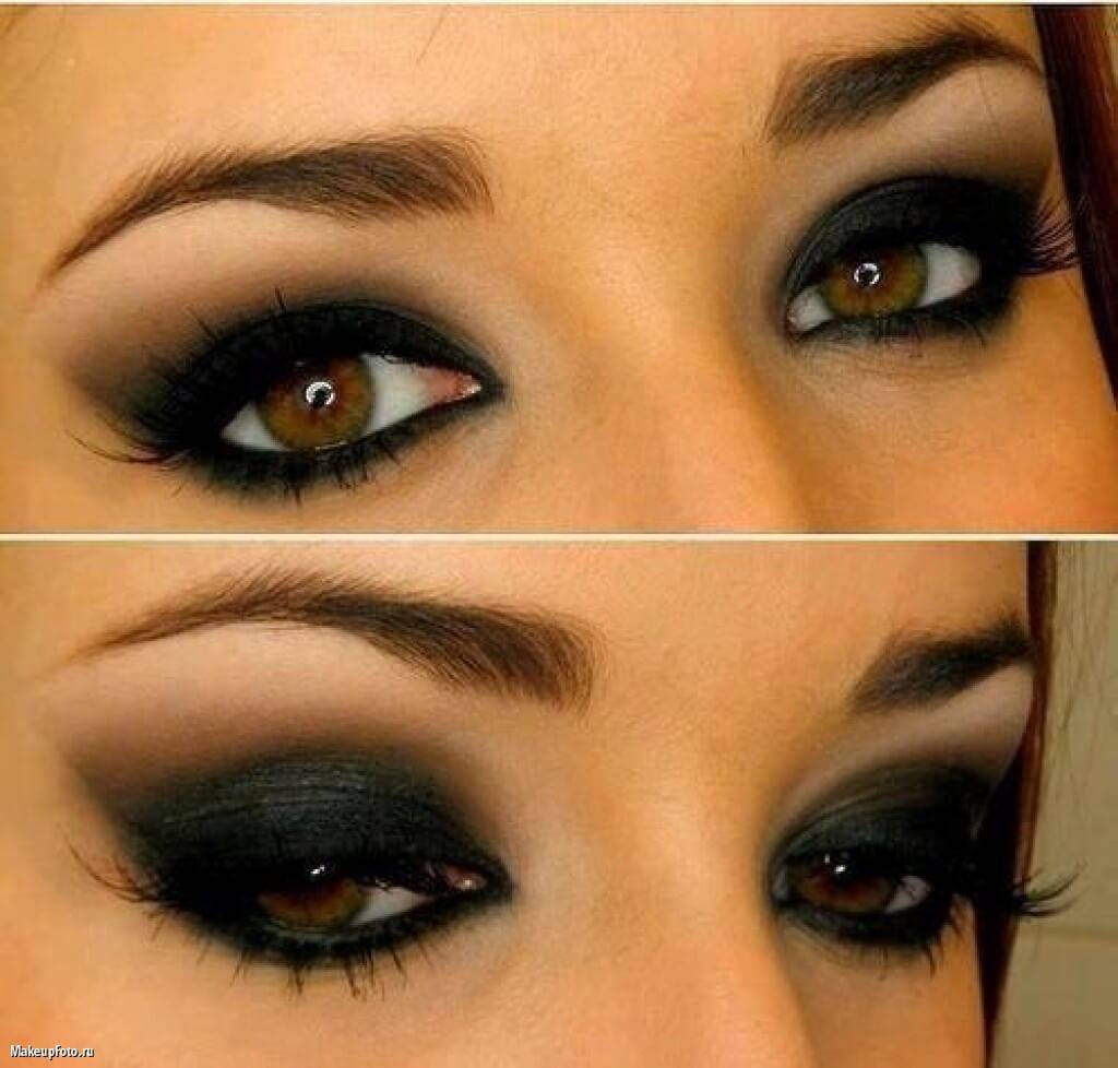 Существует множество цветовых комбинаций для создания макияжа в коричневых тонах. Благодаря этому, его используют девушки с любым цветом глаз, создавая мейкап, который им более всего подходит. Ниже представлен вариант, в котором коричневые матовые тени сочетаются с небольшим блеском.