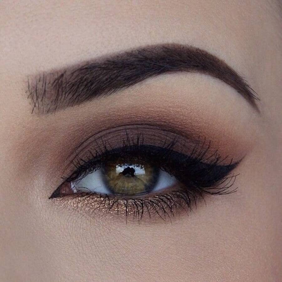 - Подводкой для глаз очерчивают линию ресниц. Можно использовать традиционную чёрную подводку, но особенно привлекательно смотрятся коричневые оттенки, такие как бронза и медь.