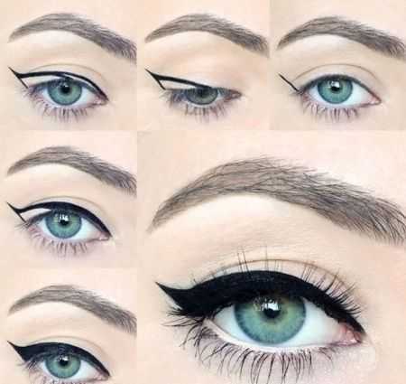 - Стрелки в стиле 60-ых: изогнутые, красиво завитые в сторону висков. Можно взять чёрный, зелёный или коричневый фломастер.
