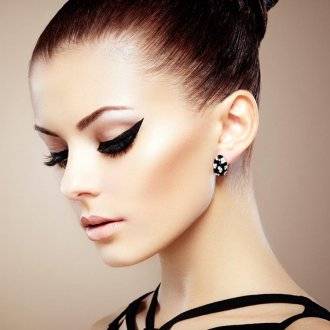 Вдоль ресничного контура нанесите темную подводку. Меняя форму стрелки, вы можете легко скорректировать форму глаза: вытянуть внешний уголок, создать «кукольный» или «кошачий» взгляд.