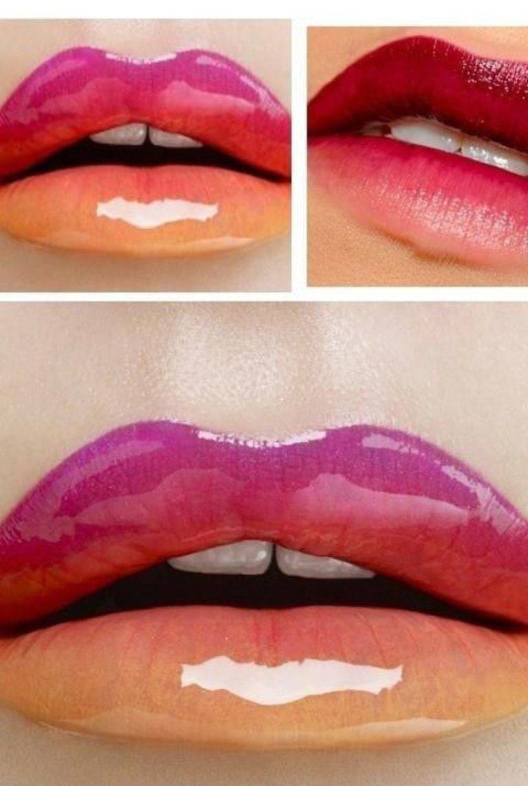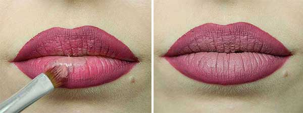 Предусматривает изменение цвета макияжа сверху вниз или от контура рта к центру. Имеет несколько разновидностей.