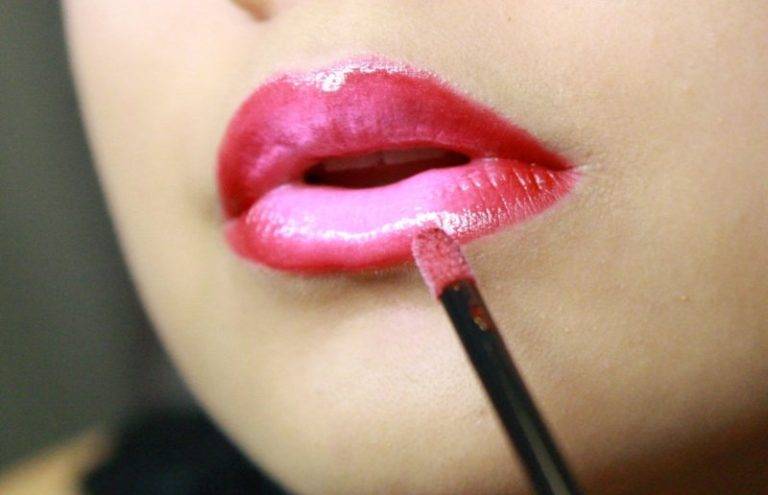 Переход между оттенками может быть как плавным, так и резким, когда верхняя губа закрашивается одним цветом, а нижняя другим, но сочетающимся с первым. При этом на края обычно наносят более темный тон, а в центр – светлый, чтобы визуально сделать губки полнее.