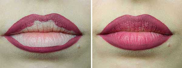 Вот так просто можно сделать макияж губ омбре, тем самым придав им дополнительный объём.