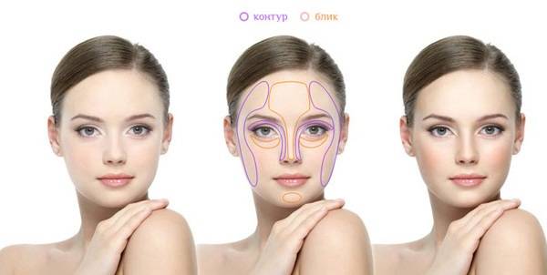 - Скорректировать крылья носа с помощью более темного оттенка, ту же процедуру провести с высоким лбом, если требуется.