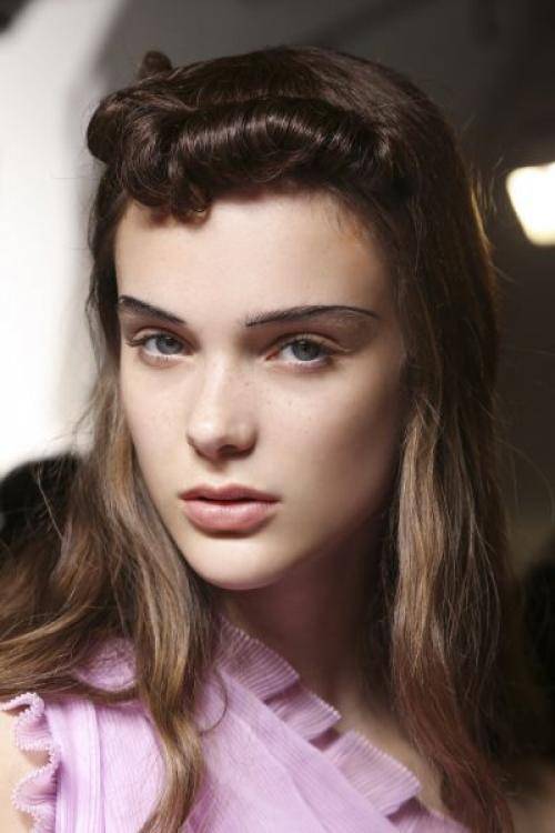 - Брюнетки. Подходит любой тон: от нюдового до яркой алой помады. Требуется выделить брови, а макияж глаз сделать максимально естественным.