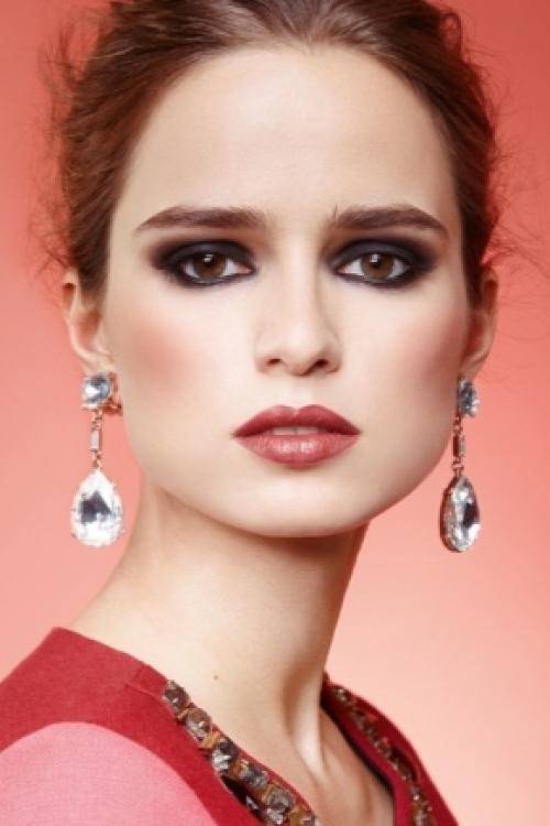 - Фиолетовые, сапфировые и изумрудные оттенки выглядят великолепно на глазах. Богатые красные рубины хорошо работают на губах. Если цвет платья или верхней части не насыщен, нужно выбрать яркий цвет макияжа, особенно для вечернего варианта.