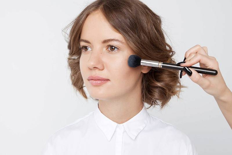 Помимо тональной основы и пудры, необходимо правильно подобрать румяна под цвет кожи (персиковые или коралловые). Даже если в повседневной жизни вы их не используете, в данном случае они обязательно пригодятся. Ведь закрасив свой естественный румянец тональными средствами, есть вероятность, что ваше лицо станет тусклым. Поэтому нужно взять широкую кисть и нанести румяна на скулы. Не забудьте перед этим втянуть щеки – это позволит сделать скулы более заметными и выразительными.
