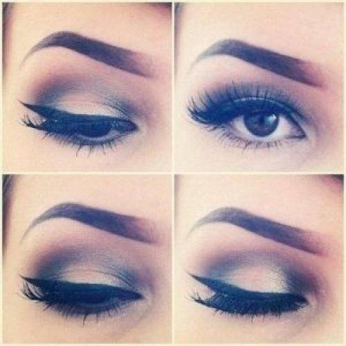 . Его необходимо наносить при помощи массажных движений, начиная с Т-зоны. Не нужно брать крем чересчур густой консистенции, поскольку это может создать эффект стянутости. Идеальным вариантом будет тональное средство лёгкой текстуры, обладающее эффектом увлажнения. Лучше всего отдавать предпочтение косметике на минеральной основе, поскольку она не закупоривает поры и ровно ложится на кожу. - Макияж глаз