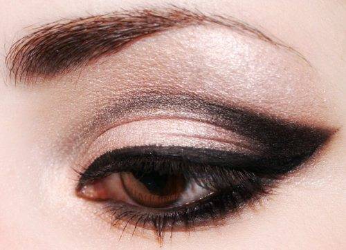 — очень контрастный, яркий и скорее вечерний вариант. Такой макияж по форме напоминает птичье крыло, оттого так и называется. Близко посаженные и круглые глаза такая техника нанесения теней визуально раздвинет и расширит: