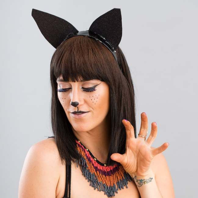 Макияж завершен. Отличным дополнением к образу черной кошки станет ободок с ушками, который можно купить в магазине или смастерить самостоятельно.