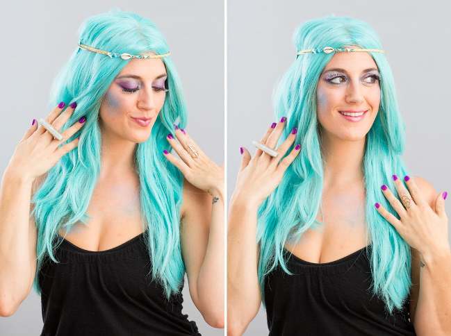 Один из самых простых и популярных способов нанесения макияжа русалки – использование оттенков синего, бирюзового, зеленого, имитация влажной кожи. Тона должны быть холодными, лицо – светлым, а кожа – полупрозрачной и сияющей. Тогда будет полное ощущение того, словно девушка и правда только вышла из морских глубин.