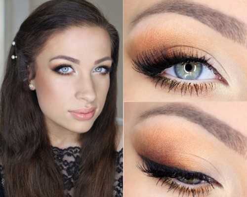 Вечерний макияж для нависшего века с частичным перекрытием мастера салона советуют делать по технике «смоки айс». Акценты в мейкапе выводят в сторону и вверх, дополнительно высветляя зону под бровями.