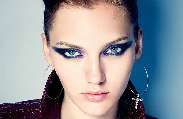 Яркий вечерний мейкап с акцентом на глаза. Техника этого макияжа заключается в выделении контуров век с помощью насыщенных тёмных тонов.