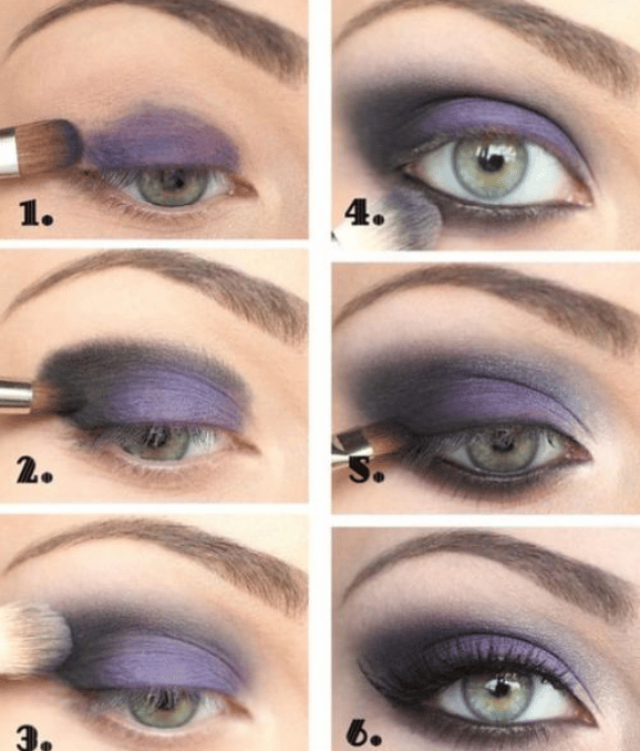 - Глаза обводим темным контуром и используем такие же тени матовой структуры. Следует растушевать их кисточкой до самых бровей. Снизу обводим контур неподвижного века и тоже используем выбранный темный тон теней: темный, серый, темно-зеленый, коричневый, темно-синий, сиреневый. Также растушевуем.
