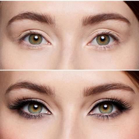 - Прокрасить верхние реснички. Нижние оформлять не рекомендуется. Если от природы ресницы короткие, следует воспользоваться накладными пучками, выделив внешнюю линию века.