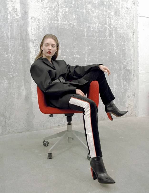 Жакет, брюки Vetements, ЦУМ Джемпер Christian Dior Ботильоны Versace