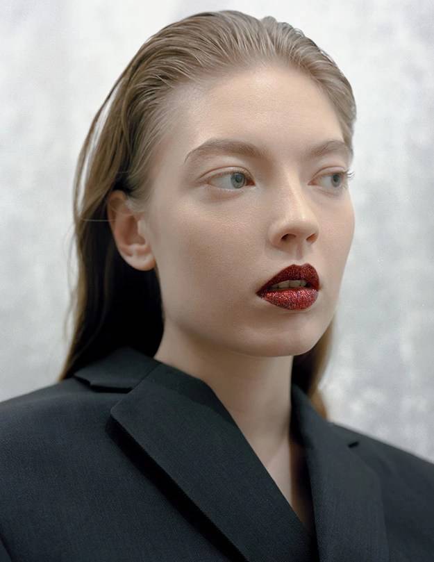 Блестки вернулись в моду. Однако главный вопрос – как их носить? Решение – спокойный стайлинг, который уравновесит выразительный макияж. Так, классический костюм, рубашка интересного кроя или лаконичное платье превратят сияющие губы и скулы в остроумный акцент. Ниже – 6 наглядных примеров.