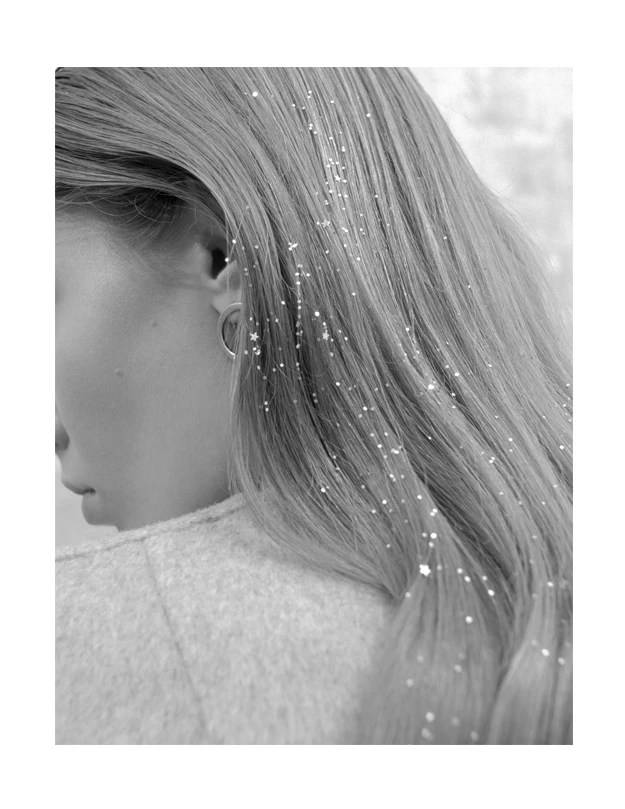Перед тем как наносить глиттер на ресницы, не забудьте их накрасить тушью. Мы использовали для съемки проверенную Le Volume de Chanel. После нее нанесите на ресницы базу для глиттера. Чтобы блестки не попадали в глаза, а оставались лишь на кончиках ресниц, используйте плоскую кисть Zoeva 322/brow line.