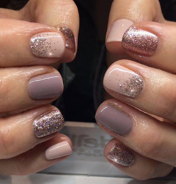 - Чтобы не переборщить с количеством блесток, оставляй глиттер только на одной области, а для всего остального выбирай натуральные пастельные текстуры с минимумом блеска и шиммера.