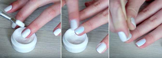 - Несколько секунд нужно подождать, чтобы сияющие частицы плотнее соединились с липким слоем лака.