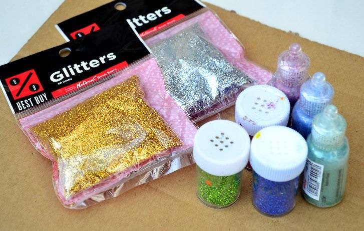 - Для надежного крепления лучше смешать небольшое количество клея с блестинками.