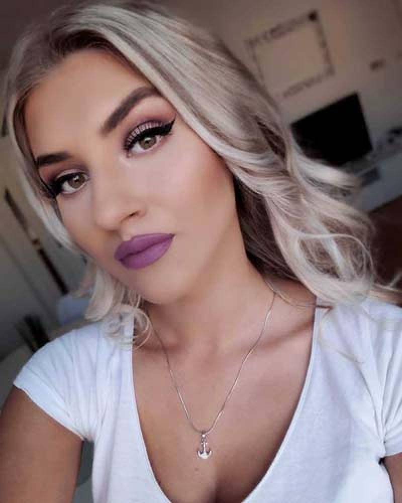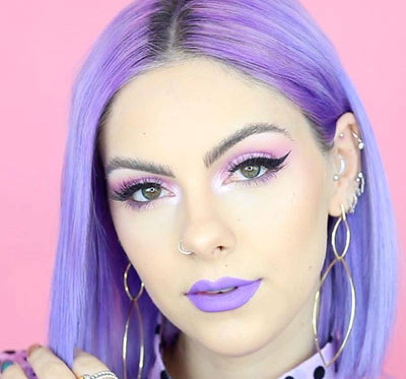 Если вам нравится сиреневый цвет, выбирайте такую помаду и тени для век. Это нежное сочетание вовсе не выглядит вульгарно.