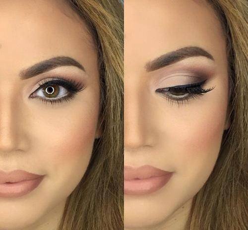 На прилавках магазинов постоянно возникают новые косметические продукты, помогающие сделать в домашних условиях макияж 2019 для карих глаз, на каждый день по пошаговым фото, не уступающий по качеству работе профессионального визажиста.