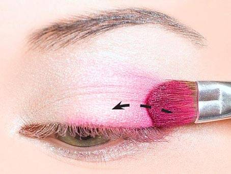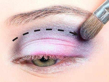 Шаг 2. Покройте внешний уголок верхнего века розовыми тенями.