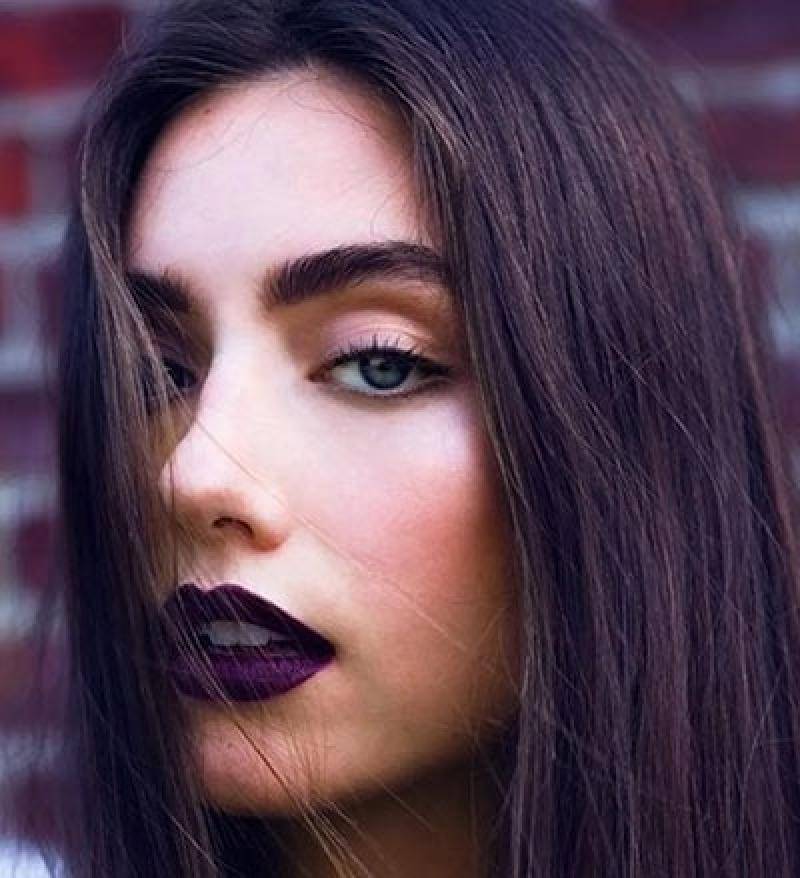 Если темные и яркие фиолетовые губы пугают, обратите внимание на бежево–коричневую помаду. Классический цвет выглядит естественно и результат приятно вас удивит