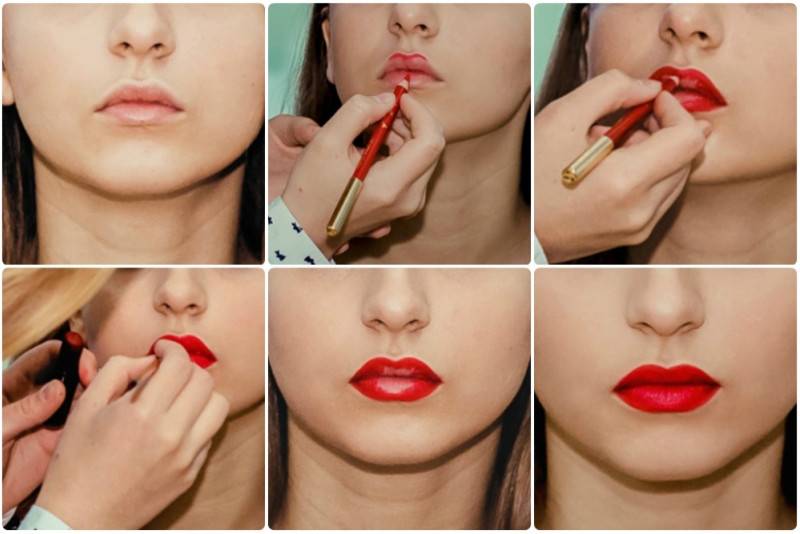 Поверхность губ должна быть идеально ровной. Перед тем, как красить губы красной помадой необходимо вооружиться простой зубной щёткой и сделать лёгкий массаж-пиллинг. Уходят шелушения, а косметика ложится ровно.