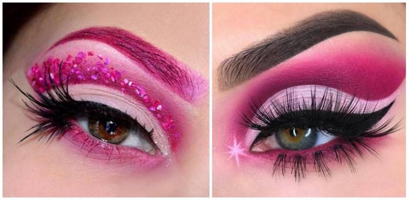 Яркий розовый макияж не подойдет для похода на работу или учебу, но такой образ будет органично смотреться на молодежной вечеринке.