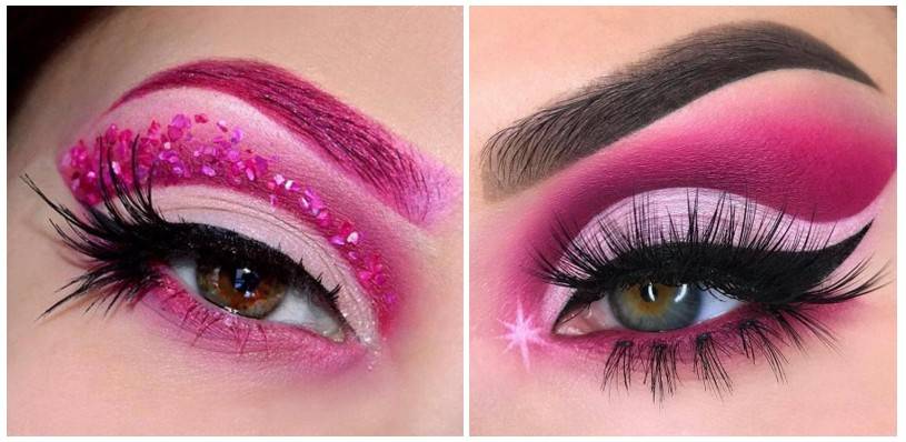 Яркий розовый макияж не подойдет для похода на работу или учебу, но такой образ будет органично смотреться на молодежной вечеринке.