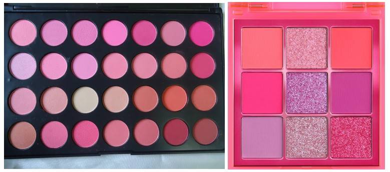 Производители косметики выпускают тени в розовых тонах на любой вкус и кошелек. Палетка может быть и миниатюрной, и включать в себя все оттенки от нюда до бордо и фуксии.