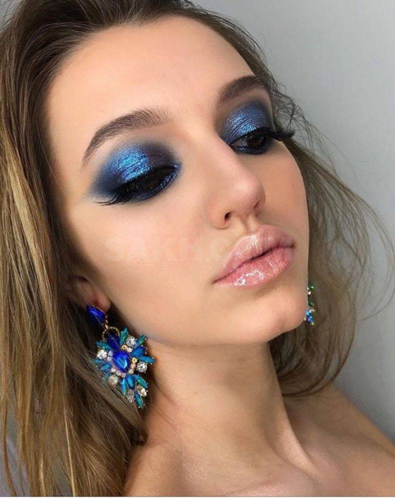 Существует большое количество интересных вариантов макияжа с синими тонами. Мы предлагаем остановиться на одной из трендовых техник мейкапа глаз – смоки-айс. Такой вариант можно считать универсальным, так как он подойдет и для светлых, и для темных глаз. Кроме того, в нем нет сложных техник, поэтому с ним справится любая девушка.