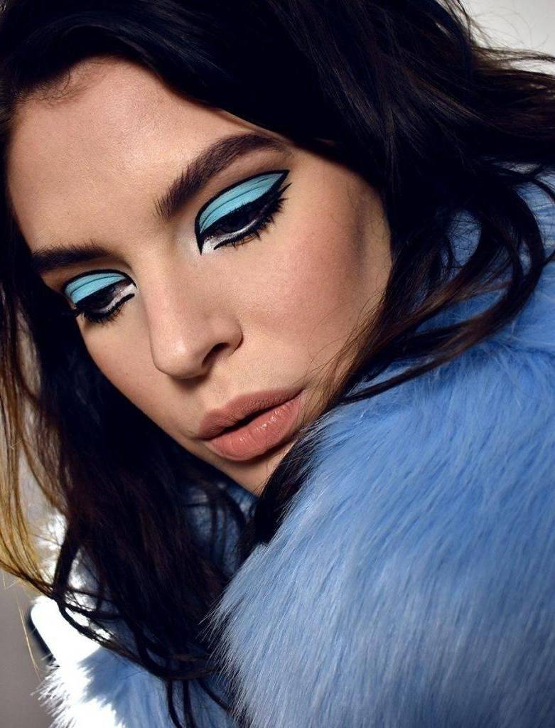 Ещё одной особенностью является цвет волос. Макияж для голубых глаз у блондинки и брюнетки будет существенно отличаться. Это связано с общим цветотипом девушки: