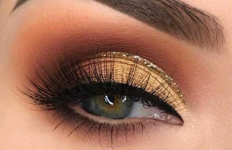 - шиммерные текстуры – те же оливковые или песочные тени с мелкими блестками сделают взгляд более притягательным;