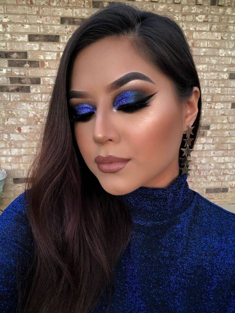 - Учитывайте, что синий макияж не лучший вариант для офиса или учебы. Более уместным он будет на вечеринке, праздничном мероприятии, особенно, если в вашем образе будут присутствовать и другие элементы синего цвета (одежда, украшения или даже обувь).