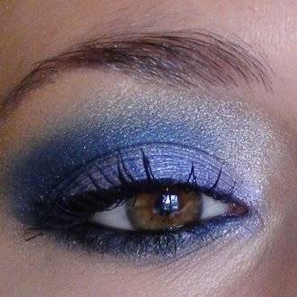 Синие тени нанесите в центр подвижного века, хорошо растушуйте границы, у вас не должно оставаться пустот.