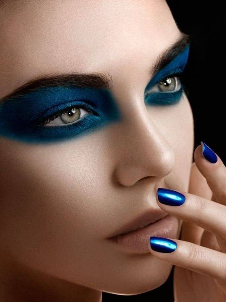 Разнообразие оттенков синих теней делает макияж очень современным, модным и позволяет экспериментировать. Не бойтесь пробовать различные варианты топовых оттенков синего – необходимо подобрать именно тот, который будет наиболее выигрышно смотреться на вашем лице.
