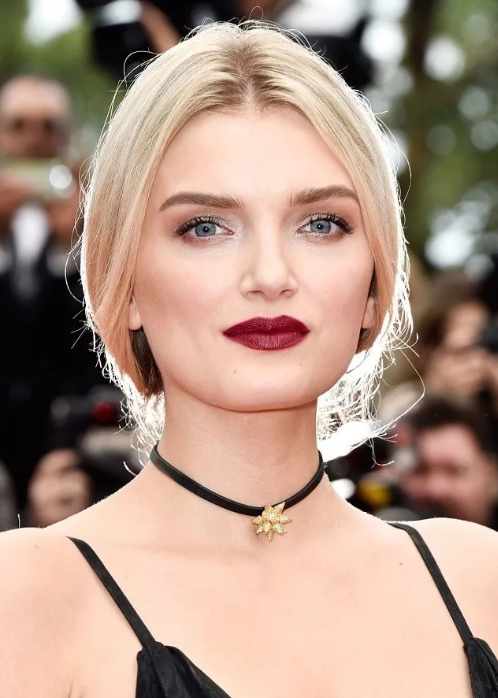 Если вы любите помаду, то предпочитайте темные цвета вишни или бордо. Румяна подойдут нейтрального тона, к примеру, ореховый цвет. Но не переборщите. Наносите минимум на скулы.